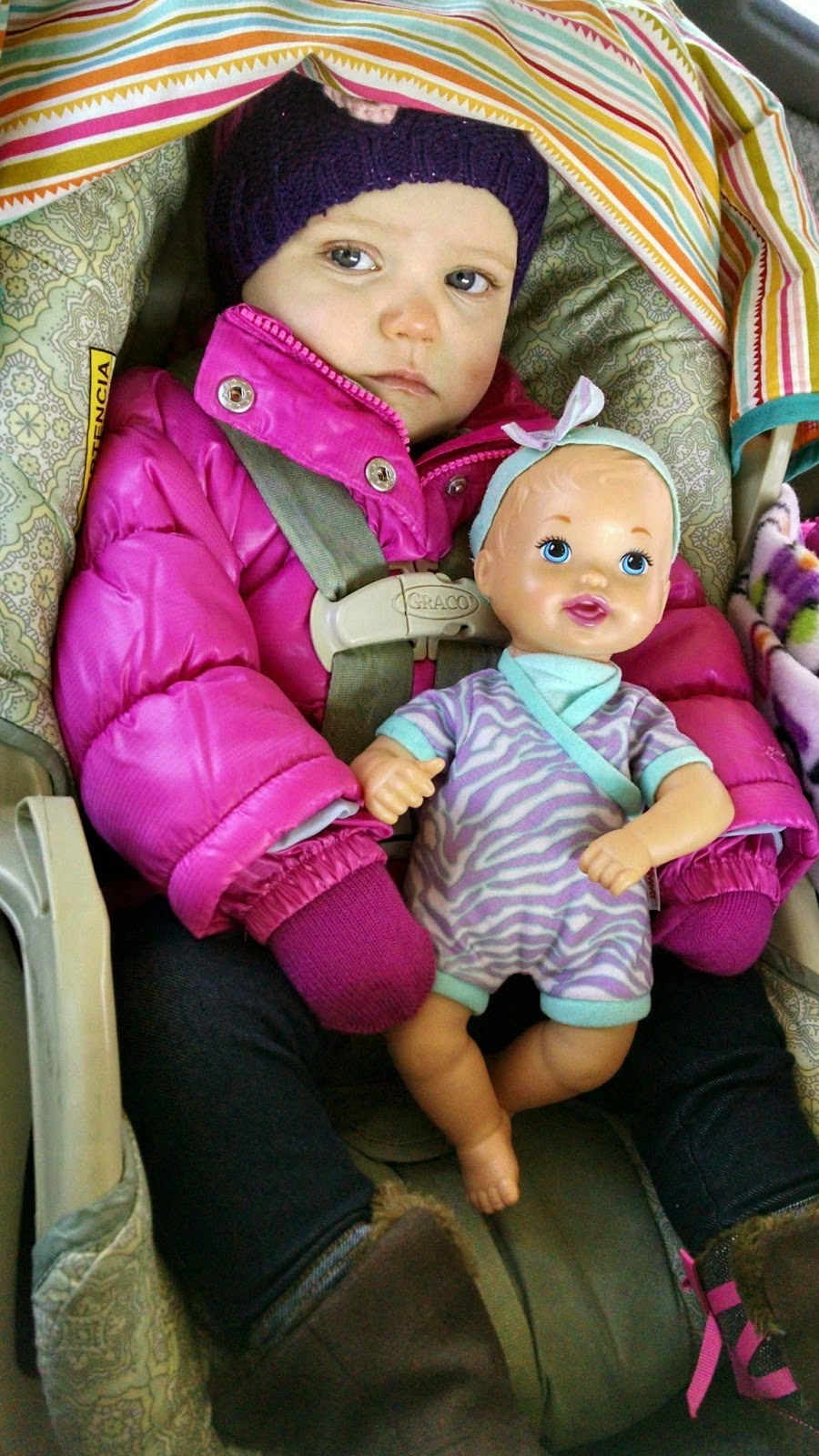 Bundling up to pick up Cayden from school. We brought all the necessary things - coat, hat, gloves, boots, and baby. :)